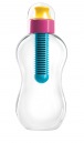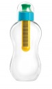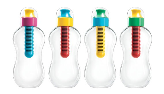 Ihre gelungenen Formen verdankt die bobble dem weltbekannten Design-Star Karim Rashid der sie zweifellos zum Top-Model unter den momentan erhältlichen Trinkflaschen gemacht hat. Für knalligbunte Farbeffekte sorgt der integrierte Aktivkohle-Wasserfilter, der gleichzeitig auch als Verschluss funktioniert. Er ist in der Kids-Variante in vier bunten Dreifarb-Kombinationen erhältlich und filtert Chlor, sowie weitere Verunreinigungen aus insgesamt 150 Litern oder bis zu 390 Flaschenfüllungen. Anschließend wird ein neuer Filter eingesetzt, der alte kann zum Recycling an den Hersteller zurückgeschickt werden.